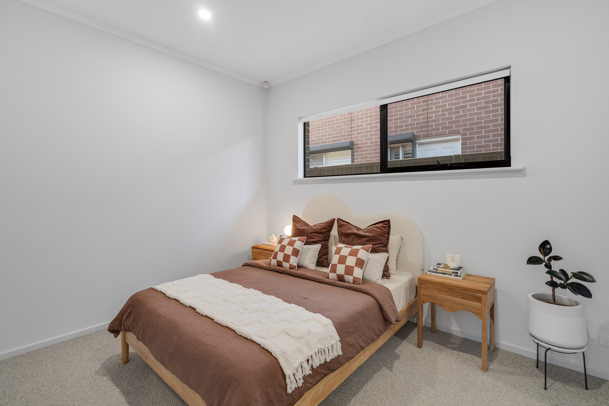 Back inside, three well-sized bedrooms provide comfort and style, each featuring plush carpets and down-lights. The master suite is a private retreat with both a walk-in robe and built-in storage, complemented by a luxurious ensuite with floor-to-ceiling tiling, matte black tapware, and Caeserstone benchtops.