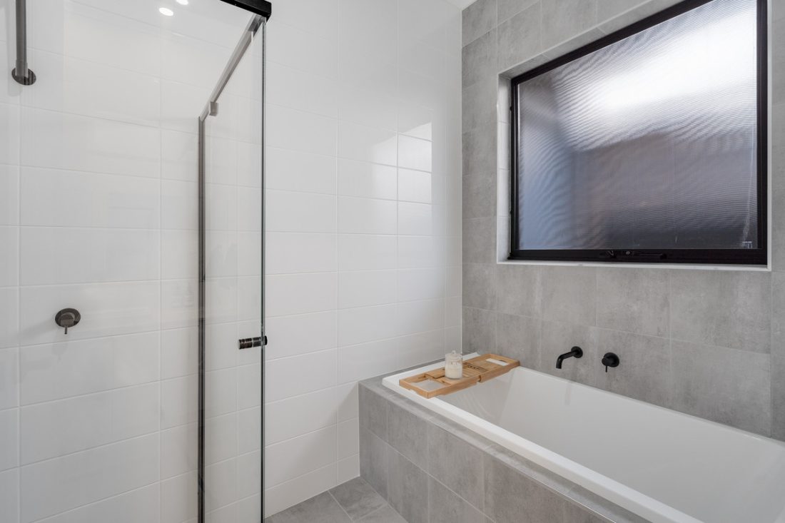 – Both bathrooms with luxurious finishes including floor-to-ceiling tiles, Caeserstone bench-tops and matte black fixtures