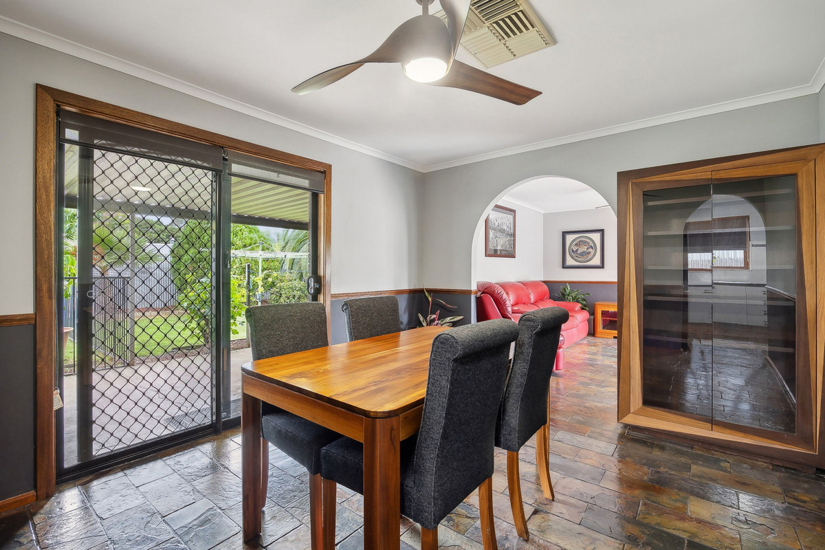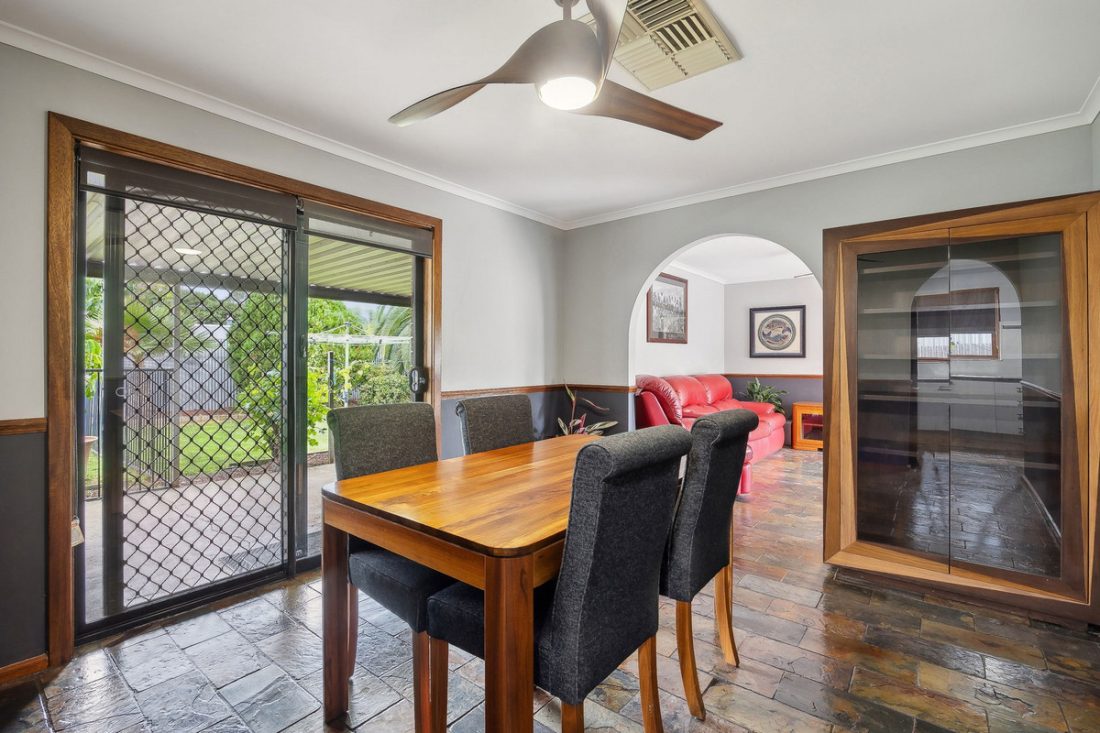 From the dining area, sliding glass doors open to an expansive undercover outdoor entertaining area, offering the perfect spot for BBQs, family gatherings, or simply enjoying the outdoors. A generously sized lawn provides plenty of space for kids to play, pets to roam, or for soaking up the sunshine.
