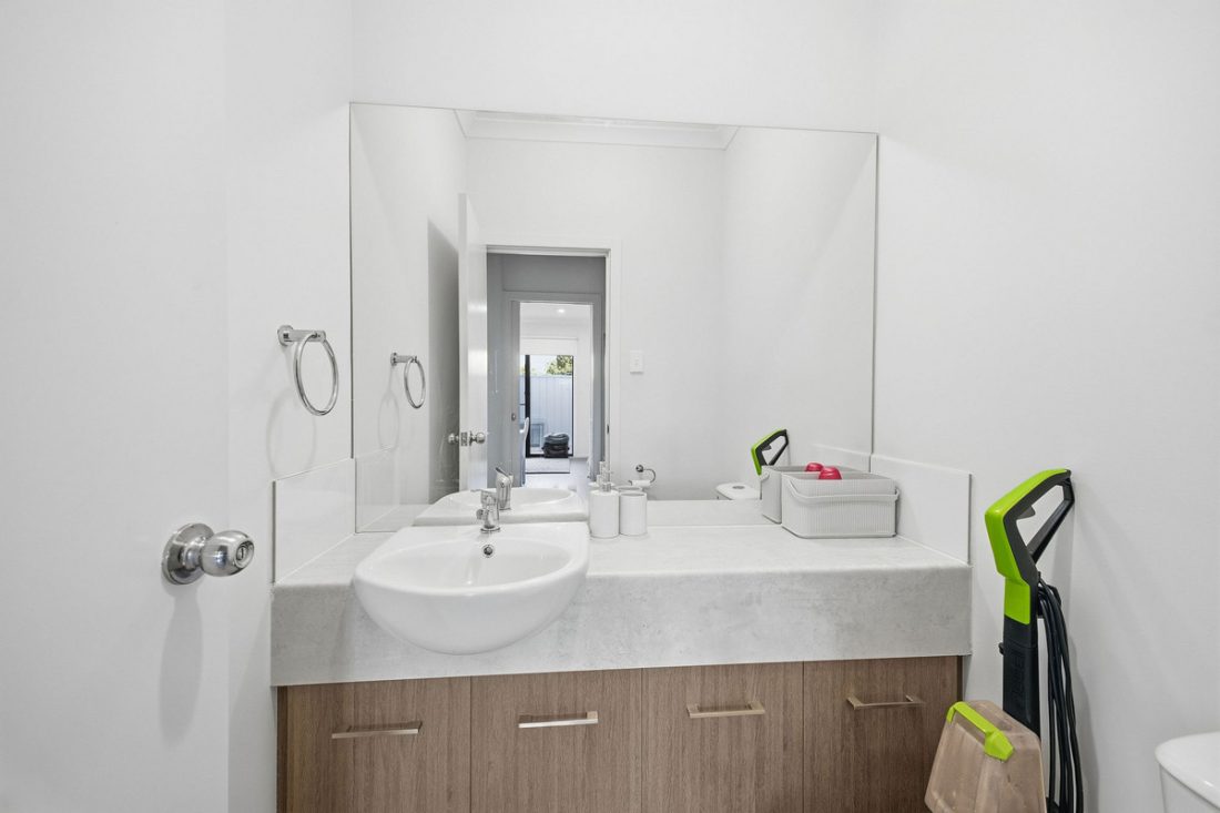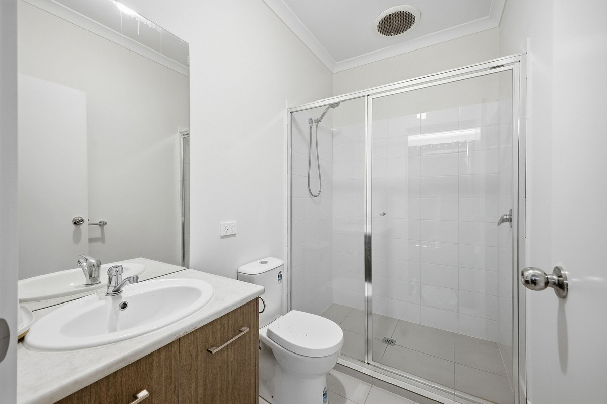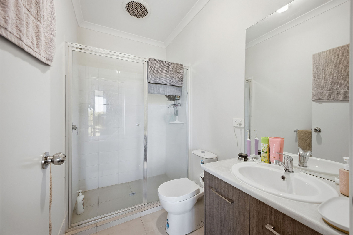 Upstairs, a landing creates the perfect nook for a study or work-from-home setup. Both bedrooms are well-sized, each with built-in robes and their own ensuites, finished in a neutral palette with generous showers.