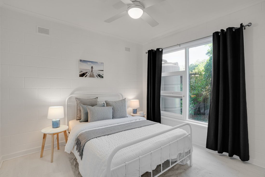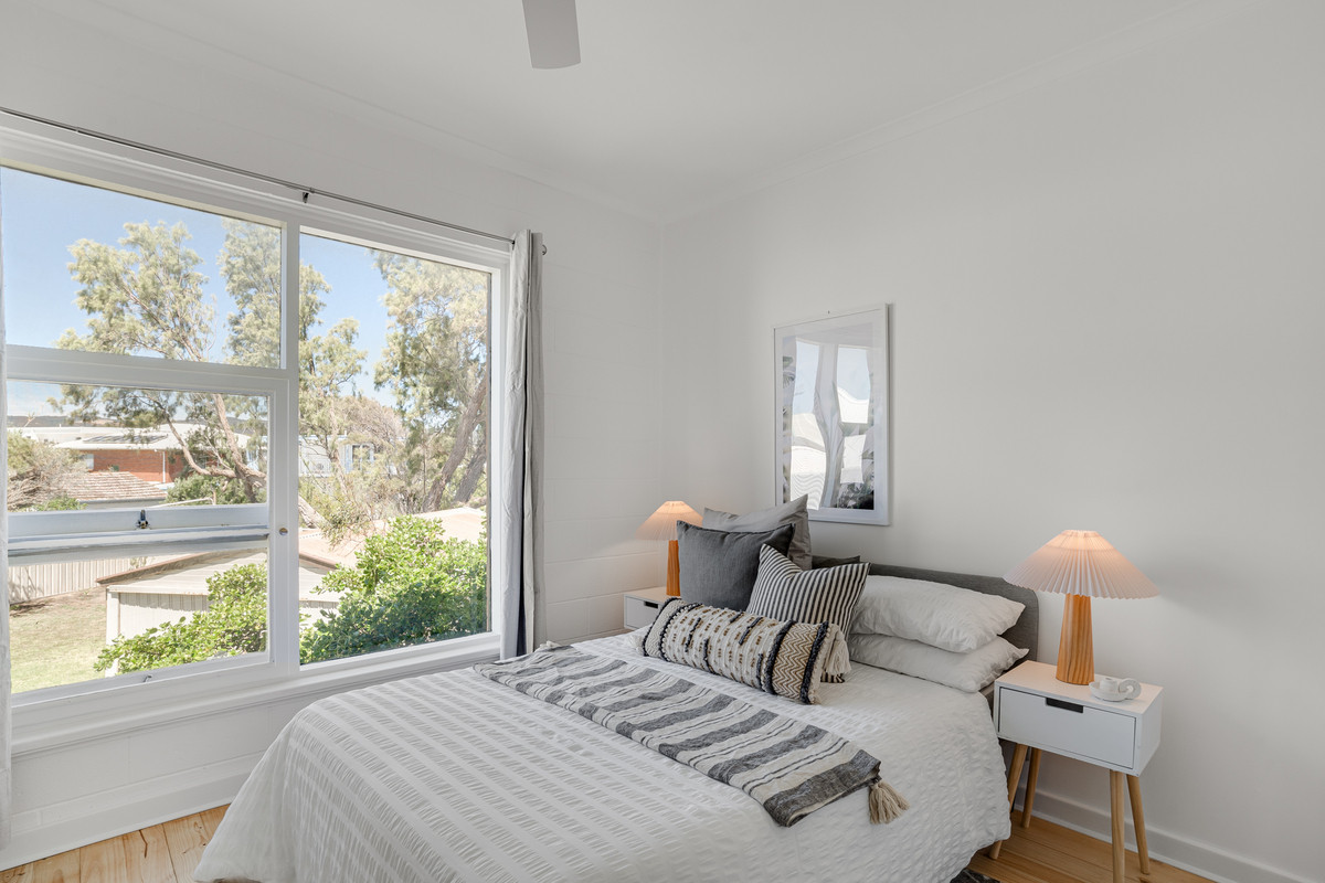 Upstairs, you will also find two inviting bedrooms adorned with the same timber flooring, and ceiling fans. Complemented by wide windows that invite the coastal ambiance into your space. One of these bedrooms also boasts a built-in robe.