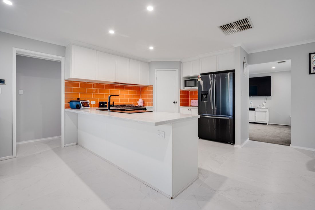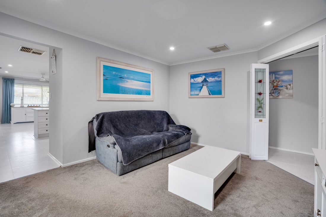 A unique feature of this home is the additional carpeted, living room adjacent to the kitchen. This space provides flexibility, offering the opportunity to transform it into a games room, a kids’ playroom, or simply another cozy spot for movie nights.