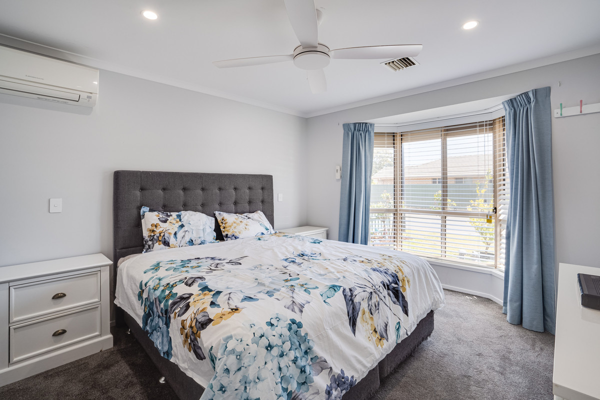 The master suite is a true retreat, plush carpeting, a bay window, walk-in robe, private ensuite, and a split system air conditioning unit, ensuring your comfort all year round. Two more well-appointed bedrooms feature built-in robes, ceiling fans, and large windows, allowing an abundance of natural light to fill the rooms.