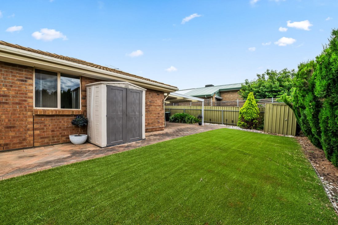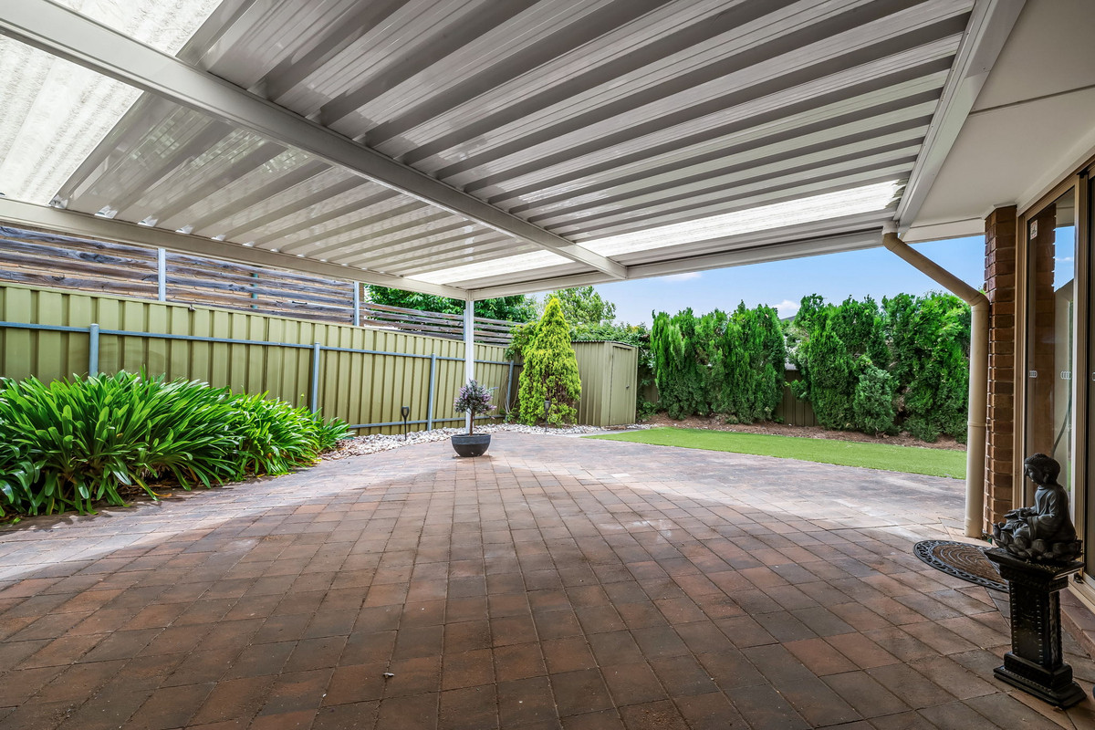 Beyond this space, a versatile area for meals and lounging is ideal for entertaining, with glass sliding doors seamlessly connecting indoor and outdoor living. Step outside to a spacious covered verandah—ideal for hosting family and friends this summer—overlooking neat artificial lawn, perfect for kids, pets, or simply enjoying the sunshine.