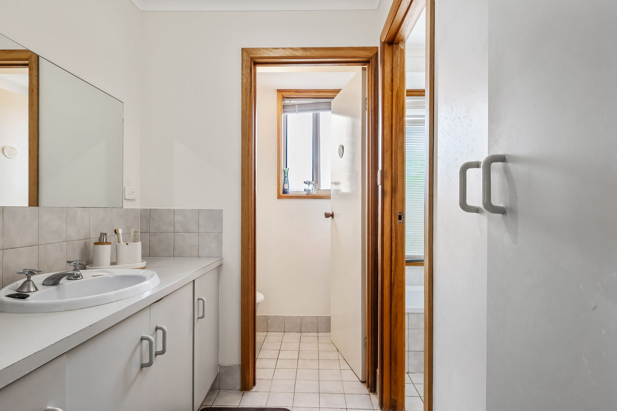 Back inside, all three bedrooms are well sized and are equipped with carpeted floors. The master bedroom boasts a walk-in robe and direct access to the main bathroom, while bedroom two includes a built-in robe for added convenience.