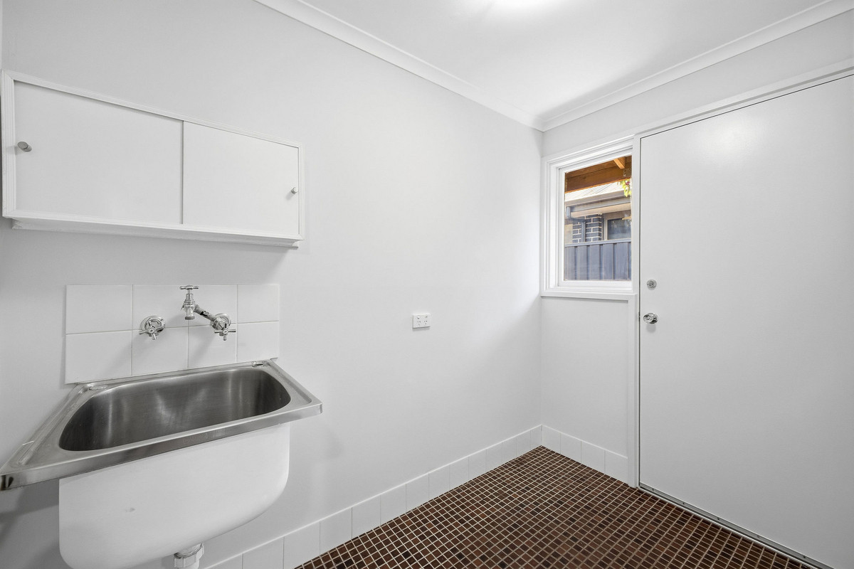 Accommodation includes three bedrooms, all fitted with plush carpet, with two featuring built-in robes. The main bathroom services the home with a shower, bath and vanity, complemented by a separate wash closet for everyday convenience. A laundry with external access completes the layout.