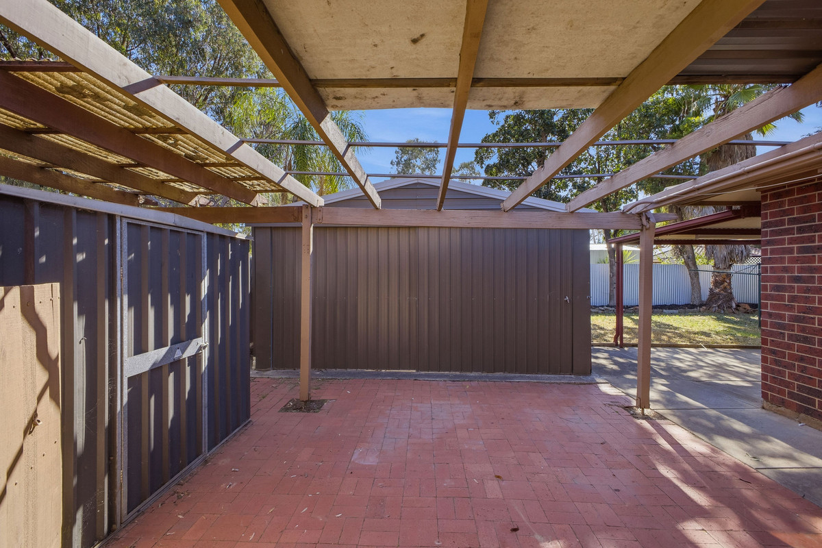 Outdoors, a spacious patio wraps from the rear to the side of the home, creating a great spot for entertaining or relaxing. The carport extends through to a generous garage, while the backyard offers lush lawn and a garden shed for extra storage.