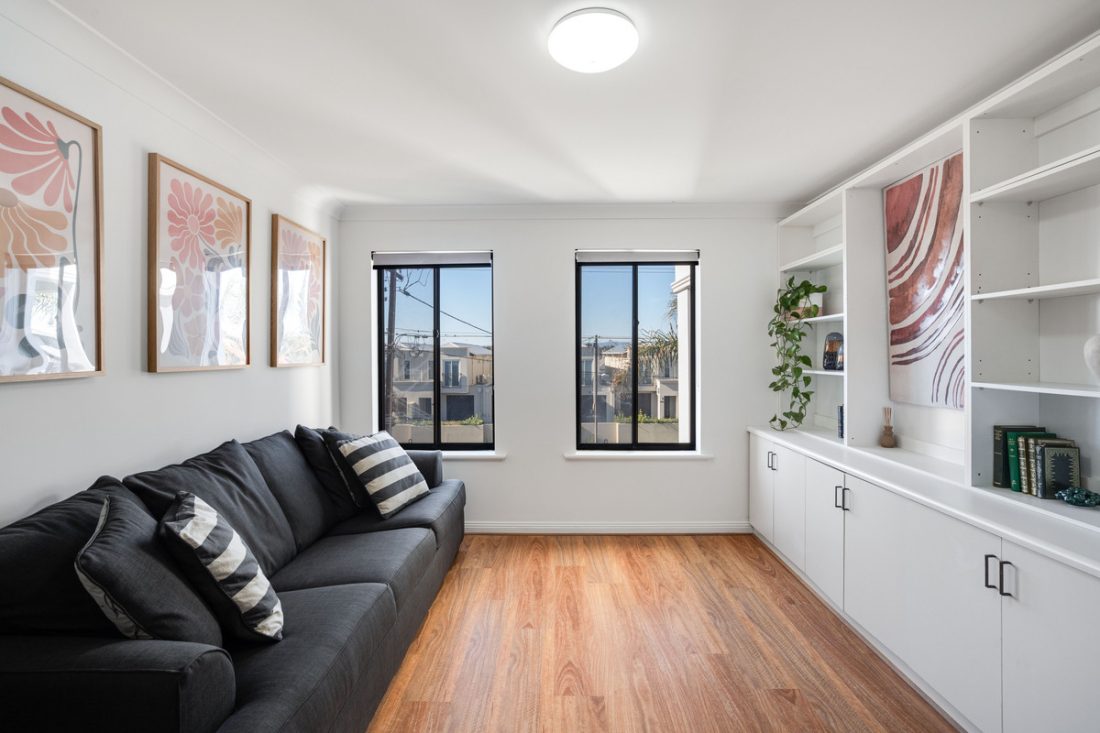 Upstairs, a third living area offers the perfect retreat for teenagers or a quiet second lounge, creating flexibility for the modern family. Four well-sized bedrooms occupy the first floor, including a master suite at the front of the home complete with a walk-in robe, luxurious ensuite bathroom, and a private balcony – ideal for soaking in the sea breeze on warm, balmy nights.