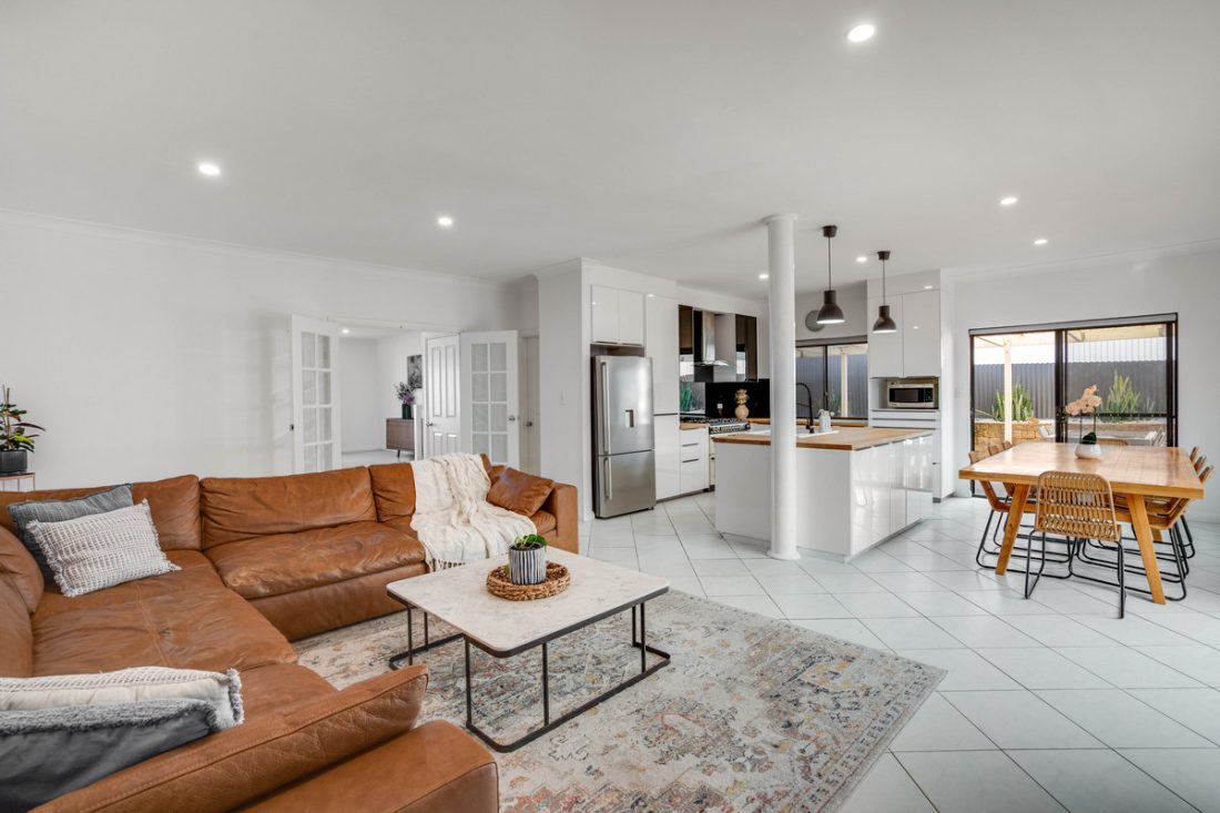 Step inside and be greeted by a generously sized front lounge bathed in natural light – a welcoming introduction to the space and style that flows throughout the home. Continue through to the open-plan kitchen, living and dining zone – the beating heart of the home where families can come together to share meals, relax and create lasting memories.