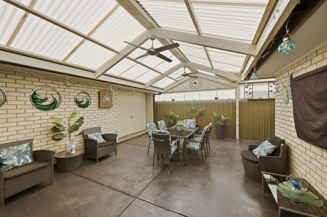 — Covered outdoor entertaining areas, artificial lawn, garden shed and low-maintenance yard