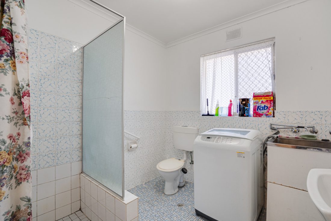 – Original bathroom with laundry setup