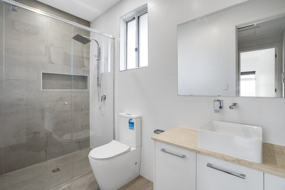The bathrooms exude luxury with floor-to-ceiling tiling, chrome finishings, and stone benchtops, enhancing your daily routine with a splash of sophistication. Bedrooms two and three, located on the ground floor, offer convenient access and flexible living arrangements, with delightful views of the newly developed streetscape.