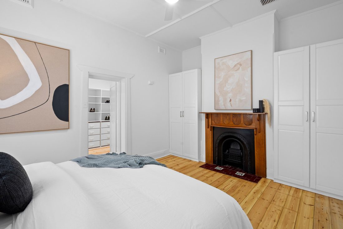 – Features high ceilings, light timber floorboards, ornate cornices, and fretwork