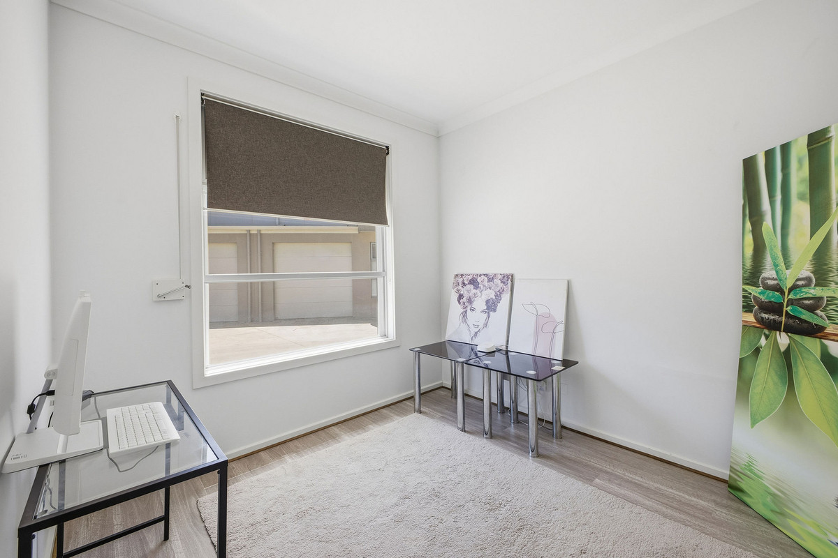 Inside, the home feels light, fresh and welcoming, with crisp walls and wood-look flooring setting a clean, contemporary tone. A front office sits just off the entry, ideal for working from home, studying, or easily repurposed as a reading nook or extra living space depending on your needs.