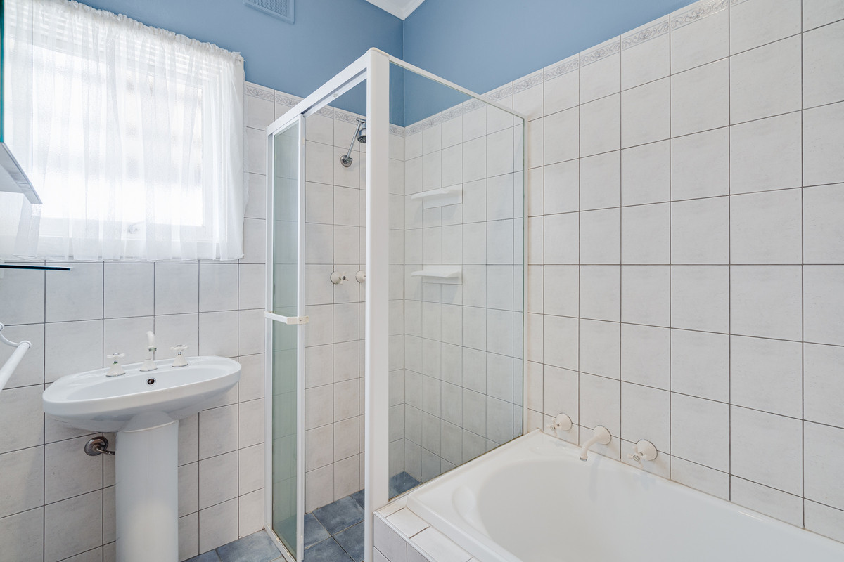 The bedrooms are cozy spaces with plush carpet, with the main bedroom featuring a convenient built-in robe for ample storage. Retreat to the charming main bathroom, a well maintained space with three-quarter tiled walls, a built-in bath, and a shower. A separate toilet adds convenience, making it ideal for family living.