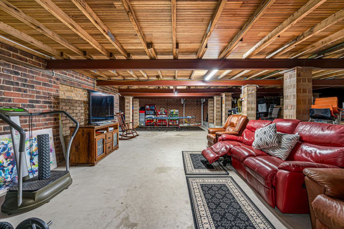 – Lower-level rumpus room offers a versatile space for the whole family