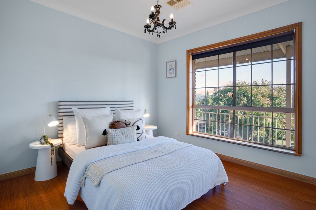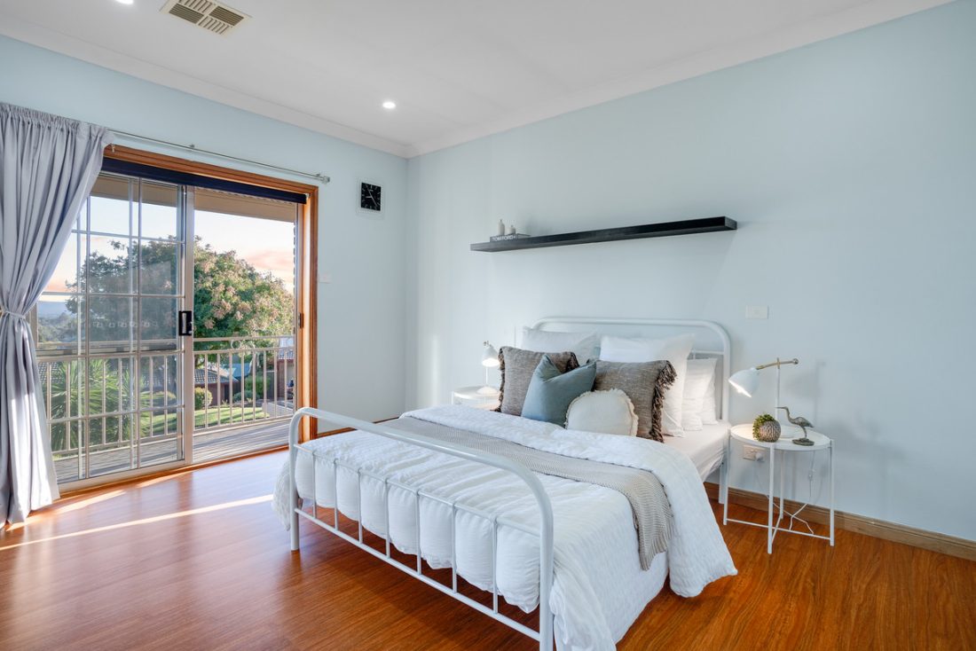 Back inside, you’ll find the master bedroom conveniently located downstairs, offering a large walk-in robe and ensuite bathroom to form a true retreat for the homeowners. Upstairs, discover 4 additional bedrooms, each with new carpet and featuring built-in robes for added convenience. Beds 3 and 4 also share access to a lengthy balcony, providing serene views of the rolling hills—a perfect spot to enjoy the natural surroundings.