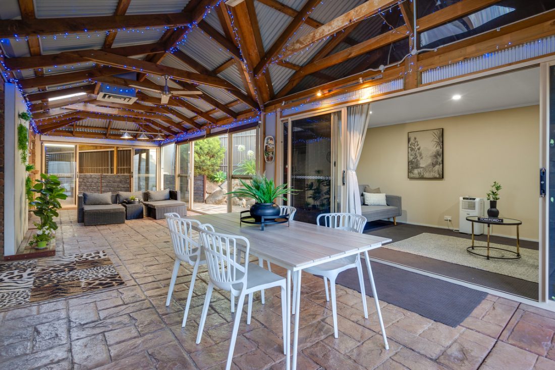 – Expansive enclosed rear pergola with ducted a/c and ceiling fans