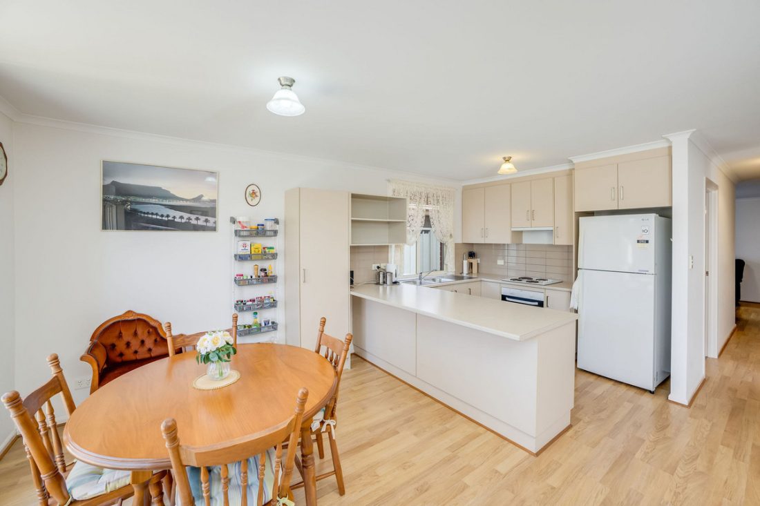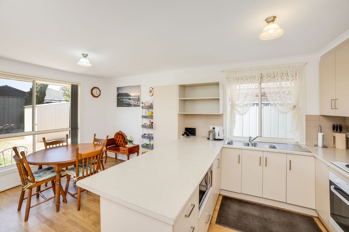 At the heart of the home, the kitchen, living, and dining area combine to create a warm and welcoming atmosphere. The kitchen features sleek cabinetry, a tiled backsplash, modern appliances and plenty of bench space, making meal preparation a breeze.