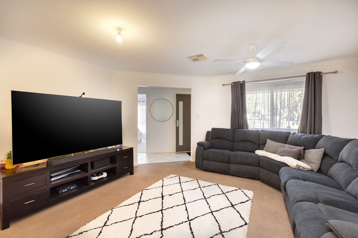 Step inside and you’ll be greeted by a formal lounge—a cozy, carpeted retreat with a ceiling fan and loads of natural light. It’s the perfect place to put your feet up and escape the hustle of the main living zone.