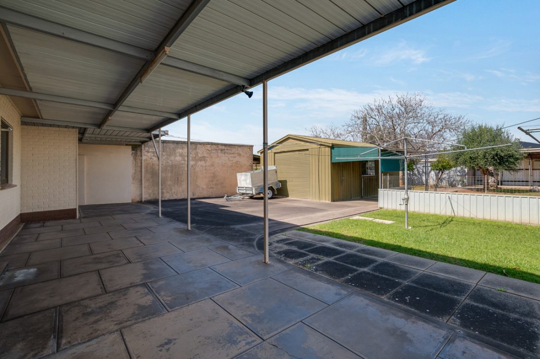 The true potential of this property unfolds outdoors, where you’ll find an expansive backyard brimming with untapped possibilities. Such generous land sizes have become increasingly scarce in today’s market, making this opportunity all the more exceptional. Step out onto the rear verandah, offering a versatile entertaining space that can be enjoyed regardless of the weather. Storage solutions abound, with a spacious double garage complete with a convenient kitchenette, alongside an additional shed. Plus, a double carport running along the side of the home provides ample room for your vehicles, granting the property a total of five off-street parking spaces.