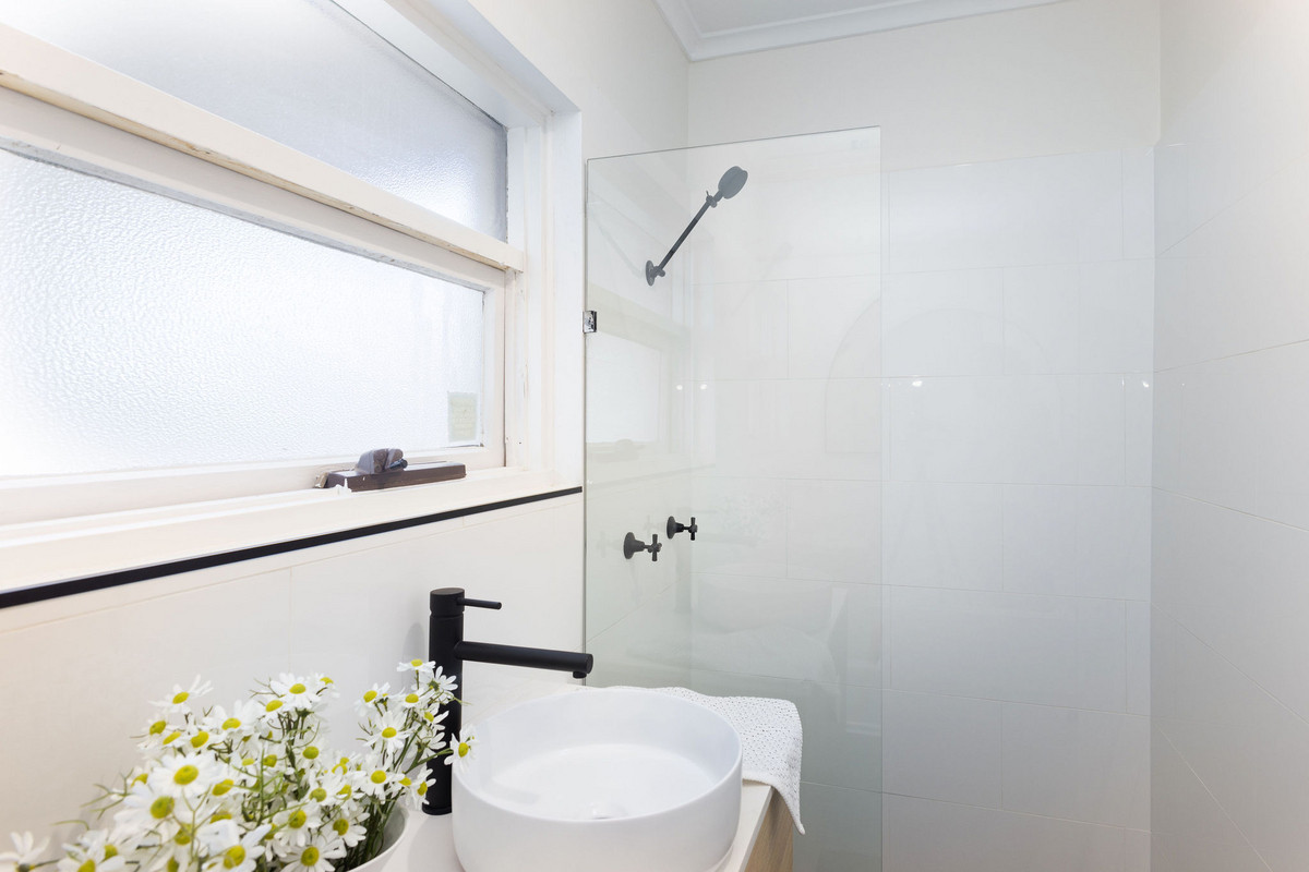 All three bedrooms are generously sized, featuring plush new carpet and ceiling fans, with the master bedroom also offering a built-in robe for added storage. The sleek bathroom showcases large white tiling, a modern vanity, frameless shower screen, matte black fixtures and a separate water closet for extra convenience.