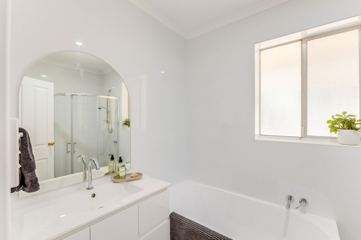 All three bedrooms include soft carpet, ceiling fans, and an abundance of natural light. The master suite adds a little luxury with built-in robes and a private ensuite finished with floor-to-ceiling tiling and modern cabinetry.