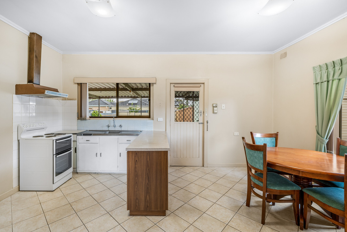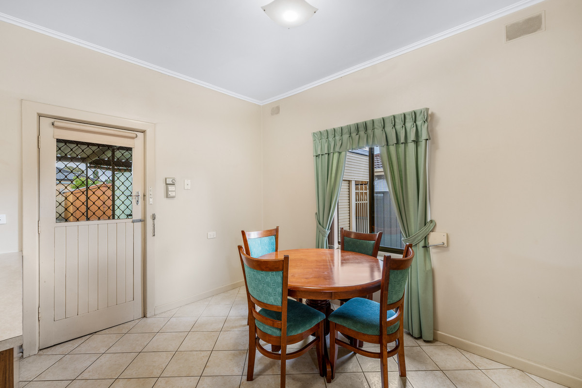 The kitchen presents in great condition, featuring tiled splashbacks, a freestanding oven and cooktop, and compact cabinetry that delivers both practicality and charm. The adjoining dining area provides plenty of space for family meals or casual entertaining.