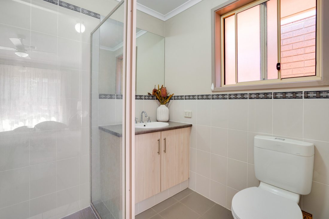 Venture back inside to discover four well-sized bedrooms, each equipped with plush carpet and ceiling fans. The master bedroom stands out with its walk-in robe and ensuite, offering a true retreat for the homeowners. Beds 2 & 3 come equipped with built-in robes for convenient storage.