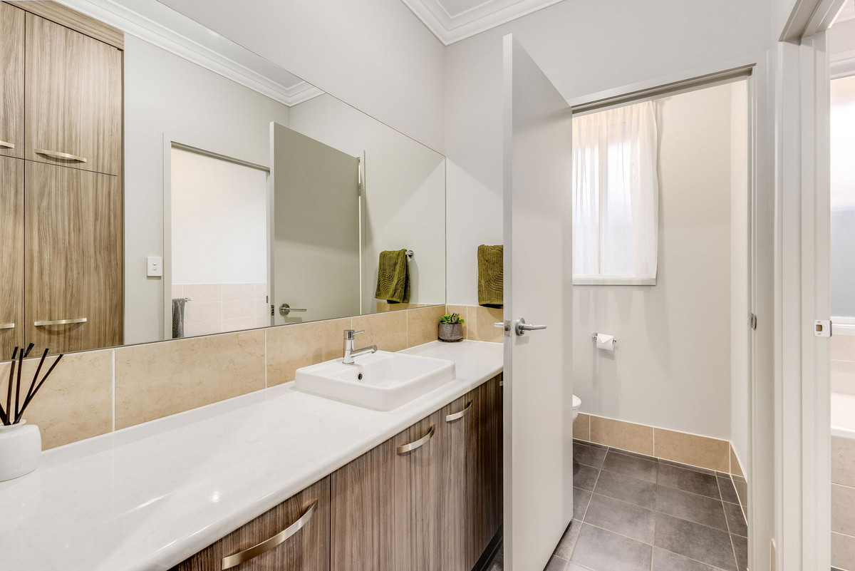 Inside, you’re greeted by tiled flooring that flows through the hallway, kitchen, and wet areas, while soft carpet adds comfort to each of the three bedrooms (plus a flexible fourth bedroom or second lounge). The master suite includes a walk-in robe and its own ensuite, complete with sleek tiling and a stylish vanity. The main bathroom is cleverly designed with three-way access, making mornings smoother and family living more convenient. Think built-in bathtub, separate toilet, and contemporary finishes in crisp white and timber tones.