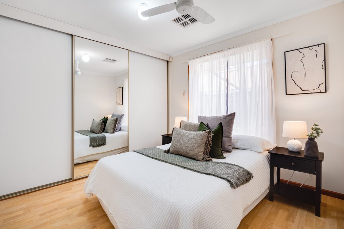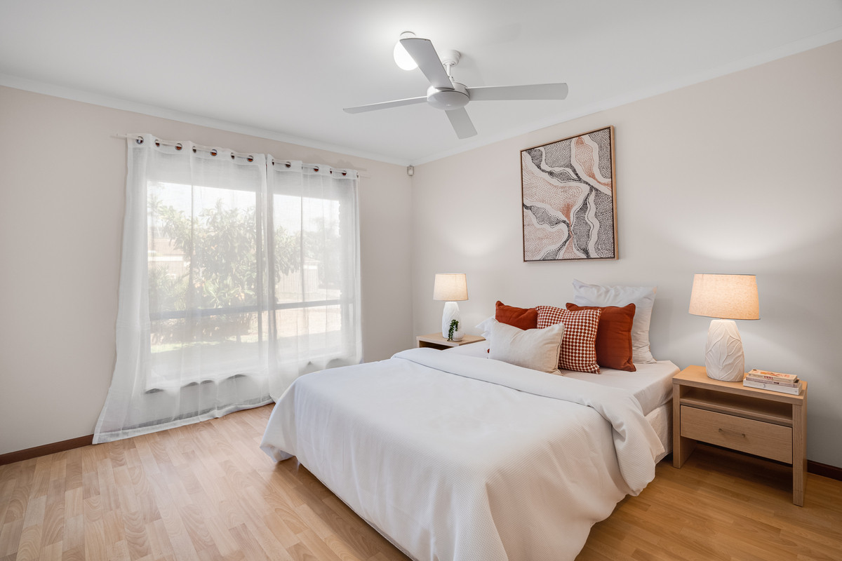 The master suite is a tranquil retreat, featuring a walk-in robe, a private ensuite, and picturesque views of the charming streetscape. Two additional bedrooms come complete with built-in robes and ceiling fans, while a fourth bedroom ensures ample space for a family of any size.