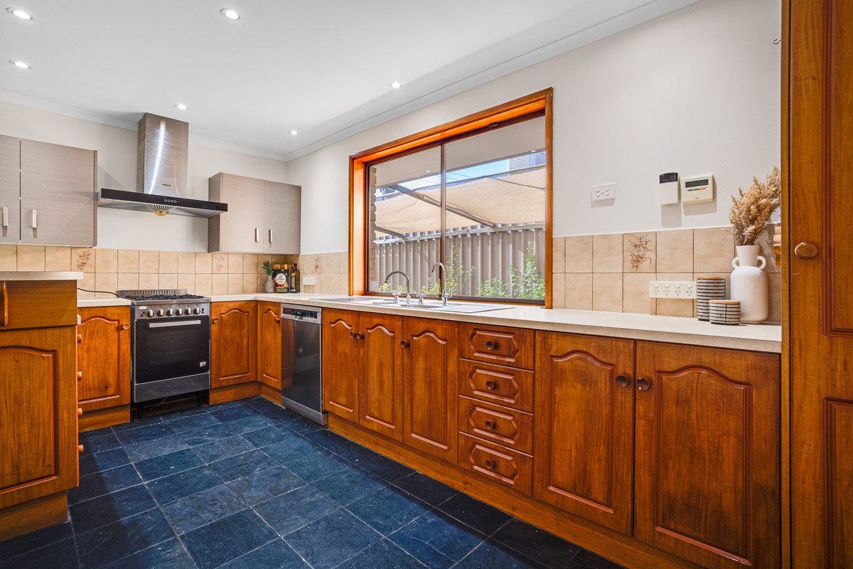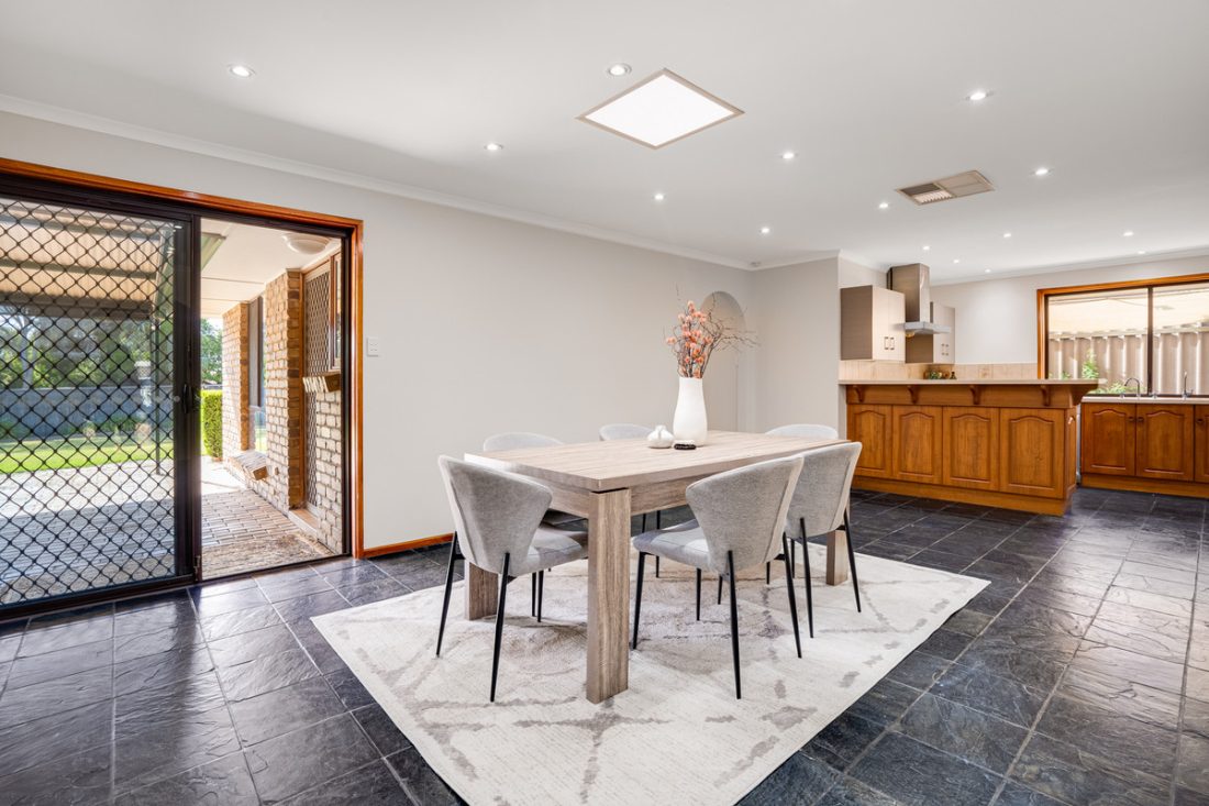 The central kitchen is a chef’s dream, equipped with a gas cooktop, ample bench space, and a convenient breakfast bar. It effortlessly connects to a large adjoining family meals area, facilitating ease of movement and the perfect atmosphere for gatherings and family meals.