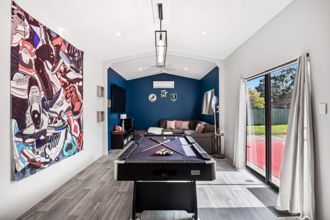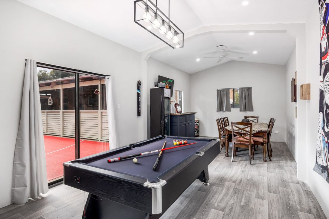 – Rumpus room with pool table, dart board and seperate toilet – ideal for a games room, gym, or teen retreat