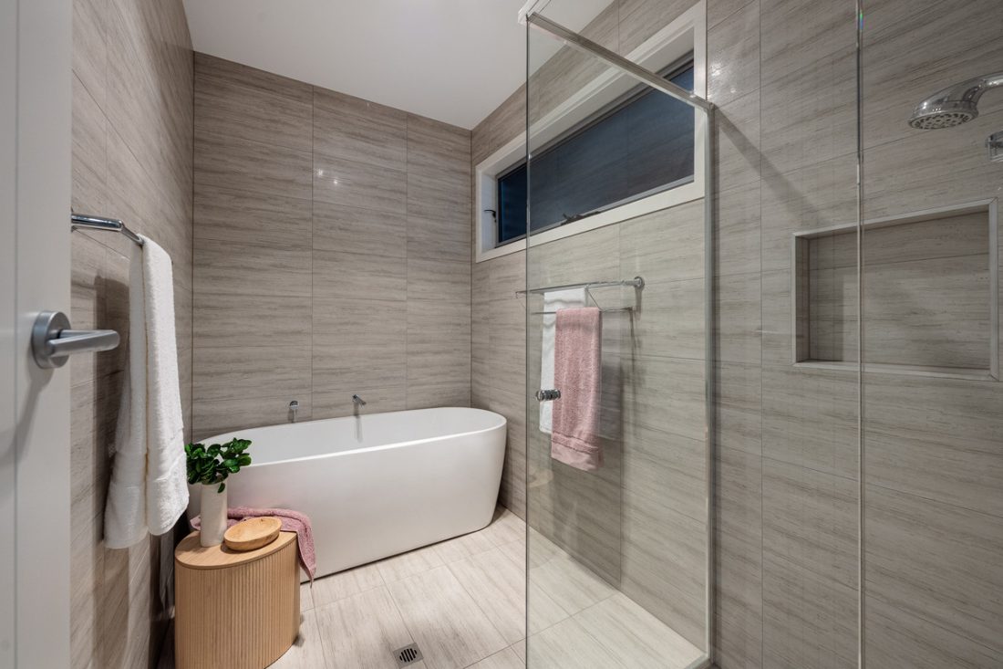 Sliding doors connect the indoors with a tiled alfresco complete with downlights, offering the ideal setting for relaxed evenings or lively gatherings. With room to design your own outdoor kitchen and a lawn framed by a flourishing lemon tree, it’s a space that invites entertaining, play, or quiet retreat.