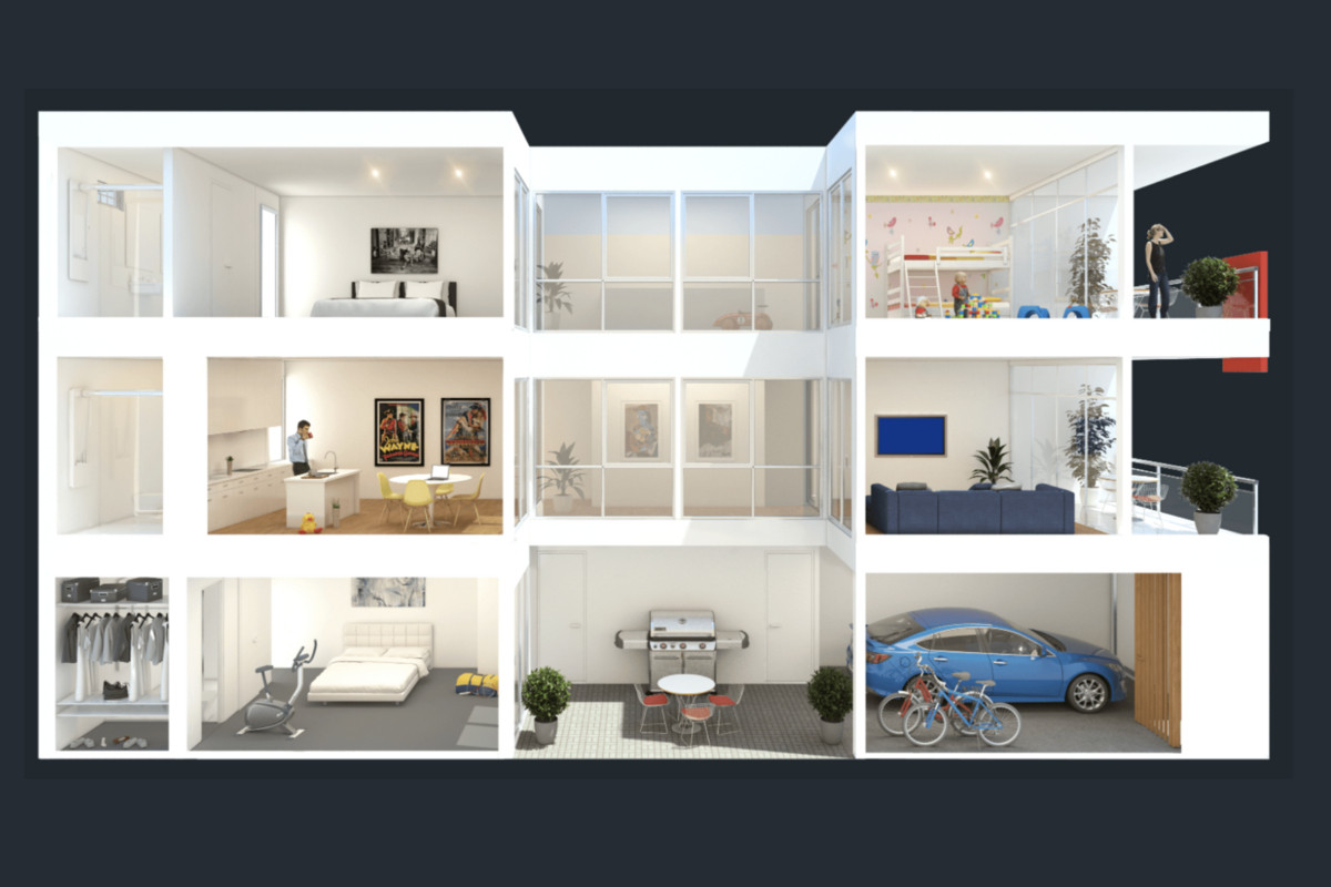 – Ground level hosts guest bedroom with walk-in robe, ensuite and seperate access