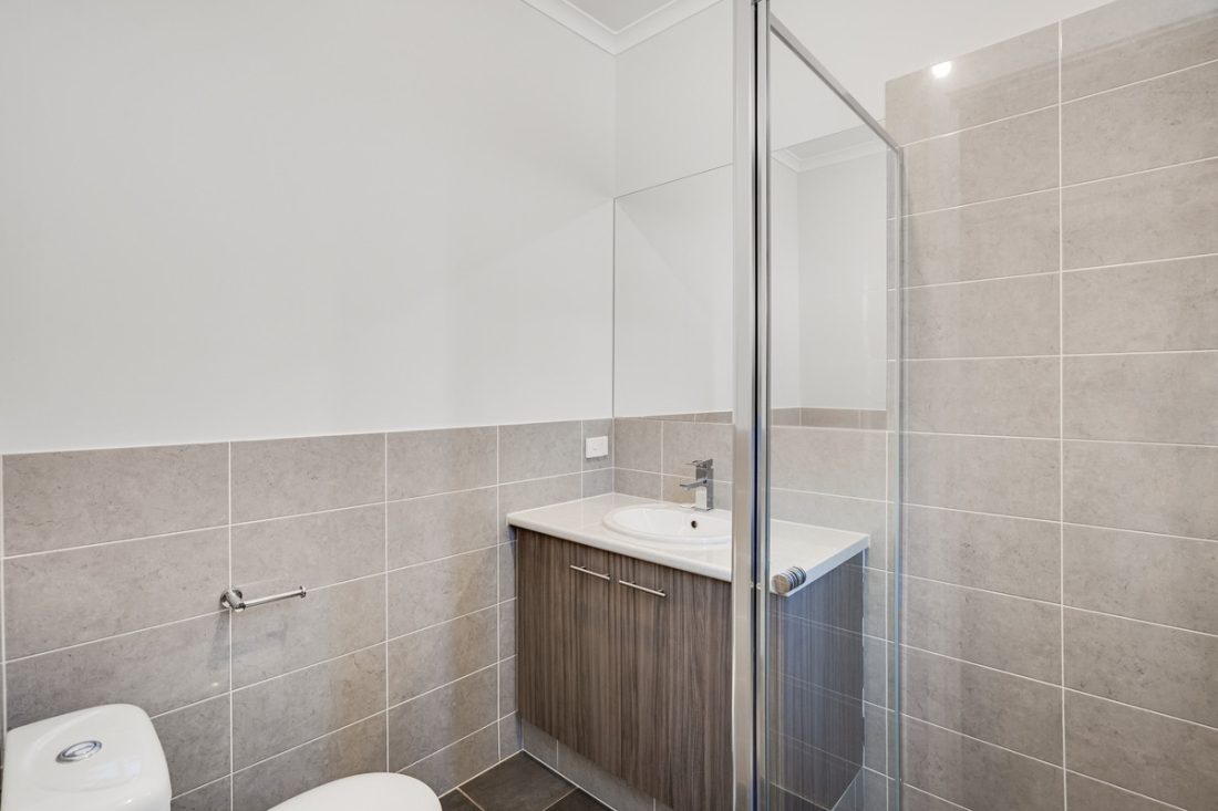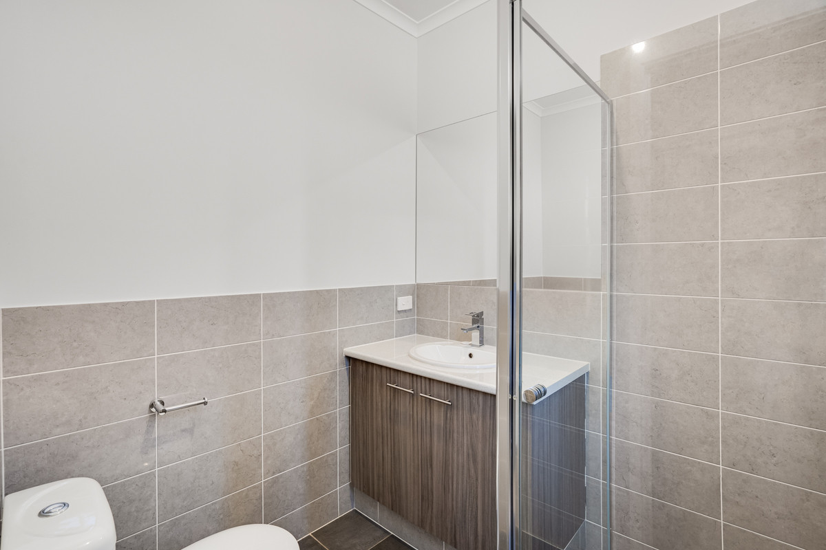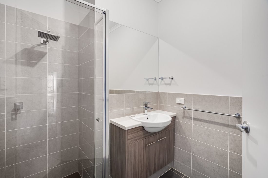 The shared main bathroom is thoughtfully positioned and continues the neutral toned tiling found in the ensuite. It offers a spacious shower and an abundance of natural light, ensuring a refreshing and tranquil bathing experience.