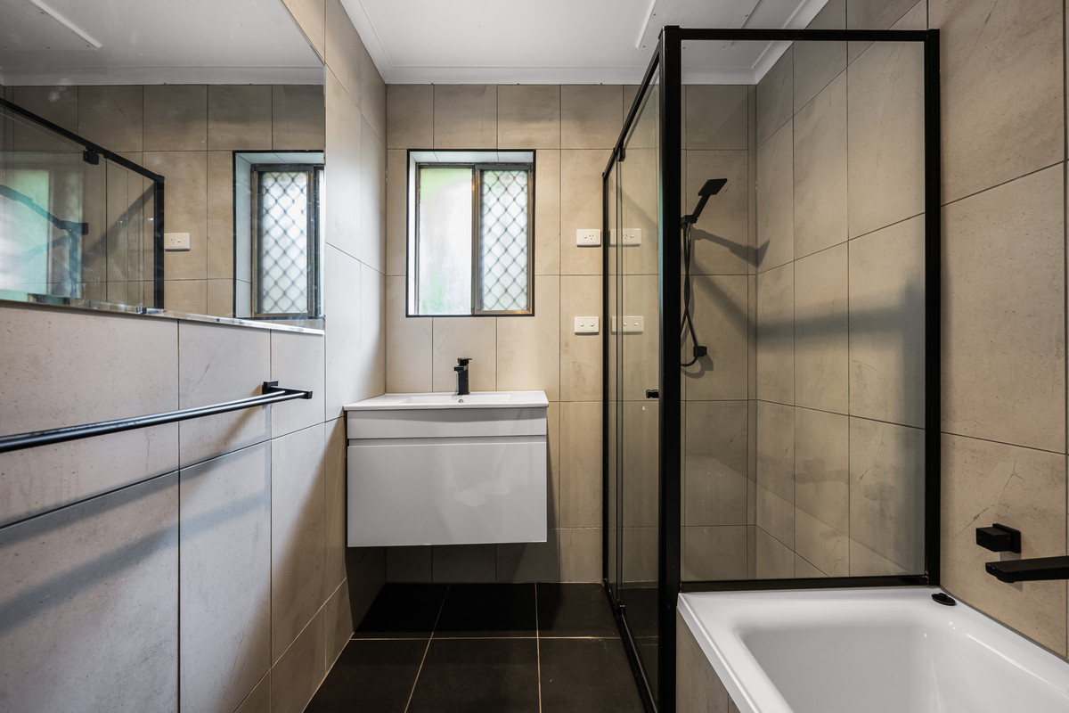 Inside, the home delivers a surprisingly versatile layout with the option of up to four bedrooms. A light-filled living room with split system air conditioning flows into a functional kitchen and dining space, while the spacious rumpus room adds flexibility as a second living area, home office, retreat or potential fourth bedroom depending on your needs. Two of the bedrooms include built-in robes, and the updated bathroom brings a modern touch with floor-to-ceiling tiles, black finishes, a built-in bath, separate shower and a separate wash closet. A well-designed laundry with external access keeps everyday living practical and easy.