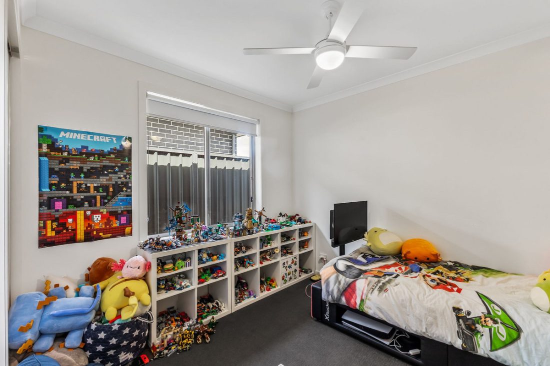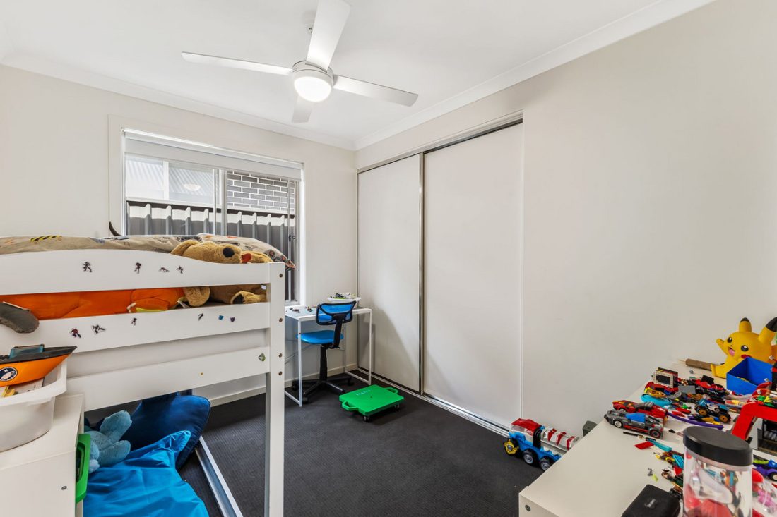 Back inside, you’ll find three generously sized bedrooms, all with plush carpeting. The master bedroom, separated at the front of the home for added privacy, offers a walk-in robe, modern ensuite, and split-system air-conditioner, creating a true retreat. The additional bedrooms feature built-in robes for convenient storage and ceiling fans.
