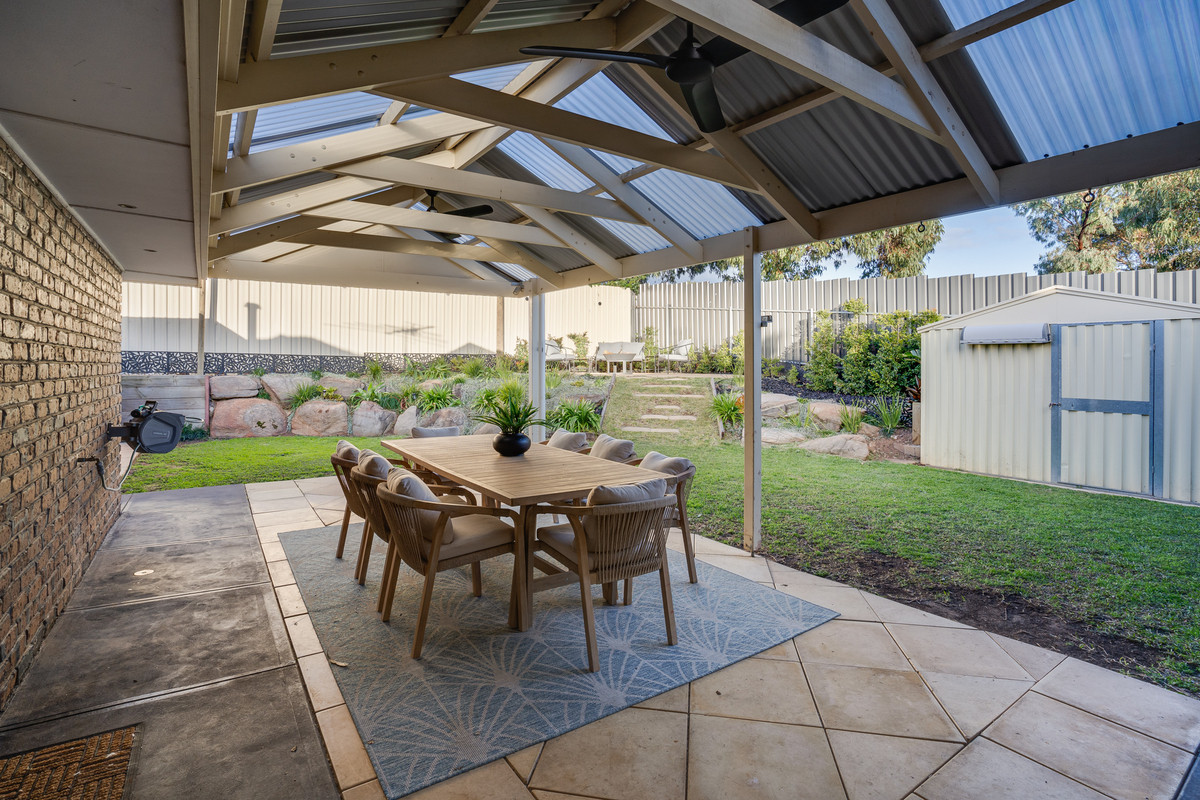 Outside, the paved undercover, outdoor area becomes an extension of your living space, providing an idyllic setting for year-round entertaining. Equipped with two ceiling fans, this space ensures comfort during gatherings.