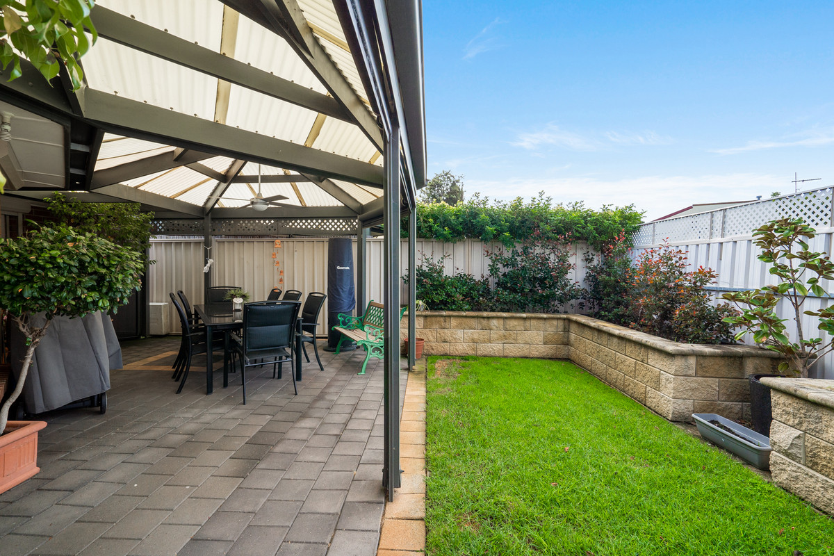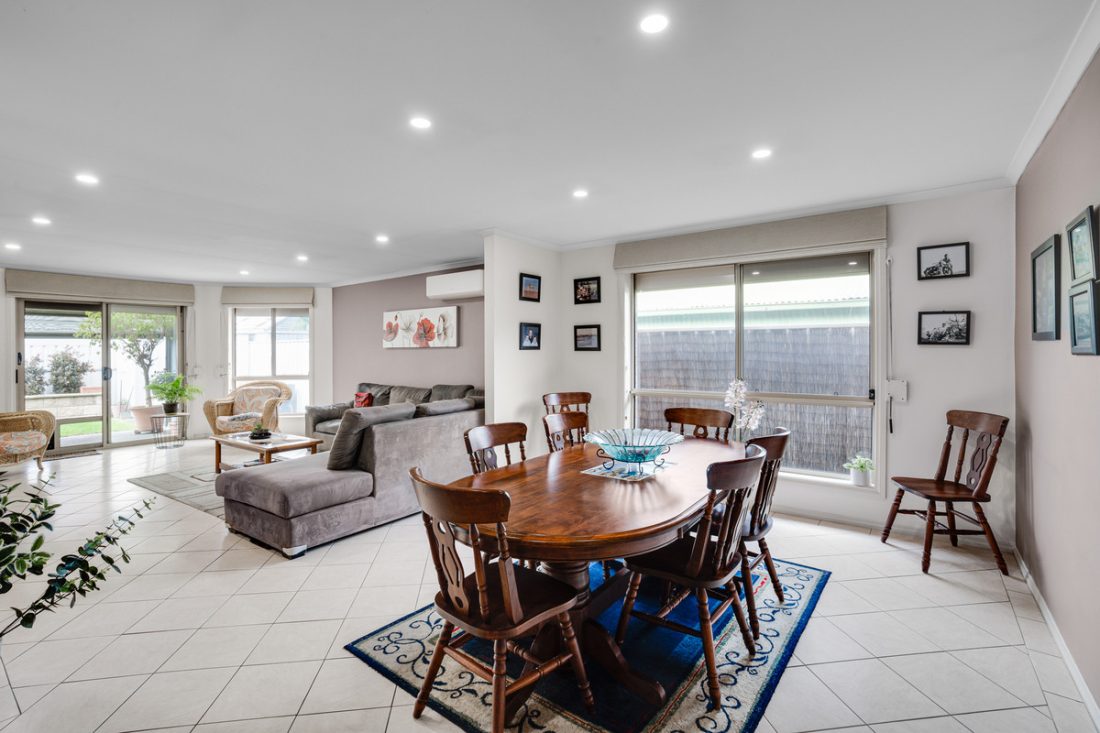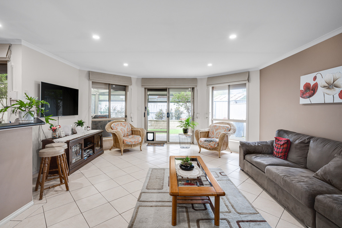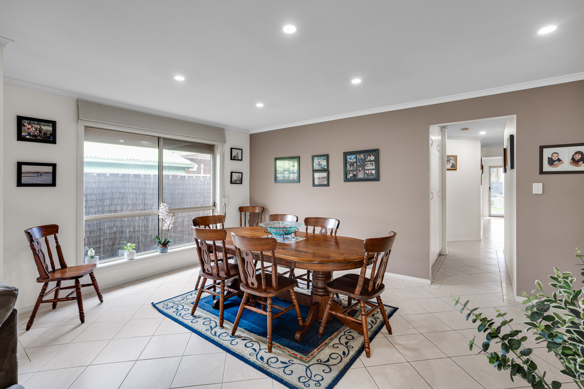 The large open plan living and dining area offers plenty of room for relaxation and socializing. The continued tiled flooring enhances the sense of space, while an abundance of natural light fills the room, creating a warm and inviting atmosphere. To further extend your living space, the paved, undercover outdoor area provides the ideal setting for family dinners and outdoor gatherings. Equipped with a ceiling fan and blinds, this area can be enjoyed all year round!
