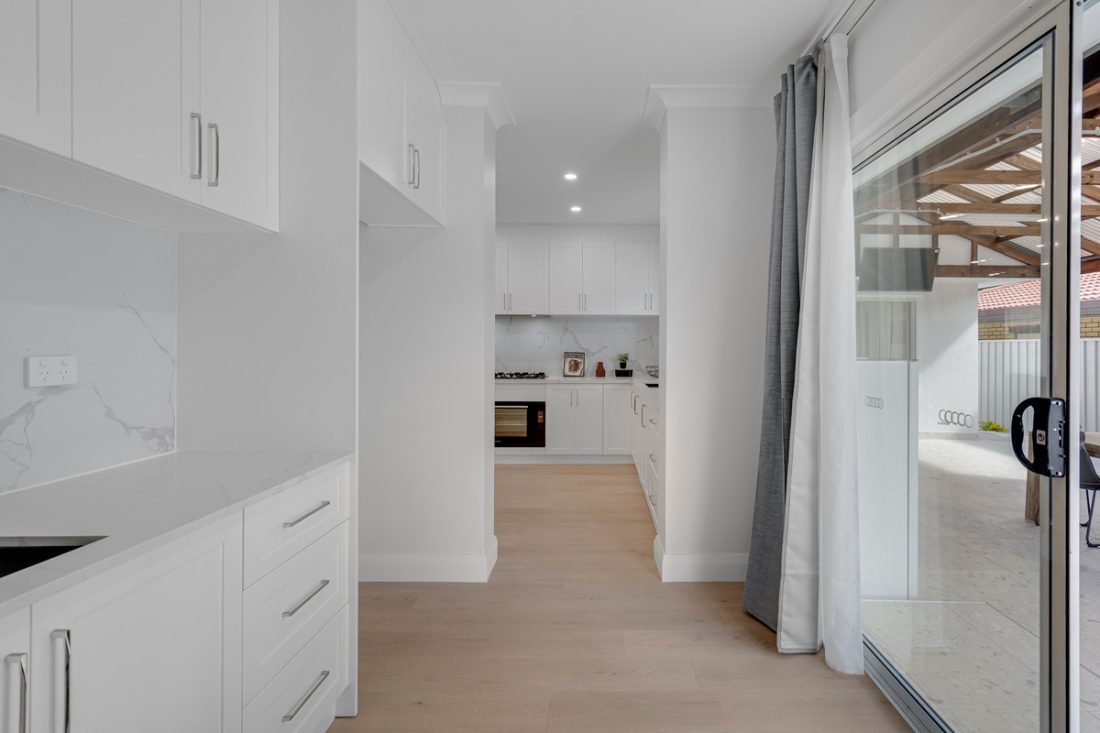 The kitchen is a showstopper, boasting stone benchtops and splashback, shaker doors, and a 5-burner gas cooktop—a dream for any culinary enthusiast. For added luxury, a butler’s pantry is cleverly designed with a second sink, dishwasher, and fridge provision, ensuring the utmost convenience and functionality.