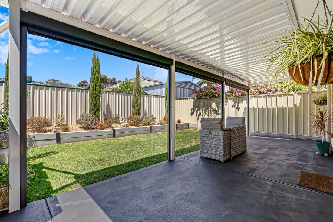 – Undercover alfresco area overlooking a neatly manicured lawn and a tidy garden bed