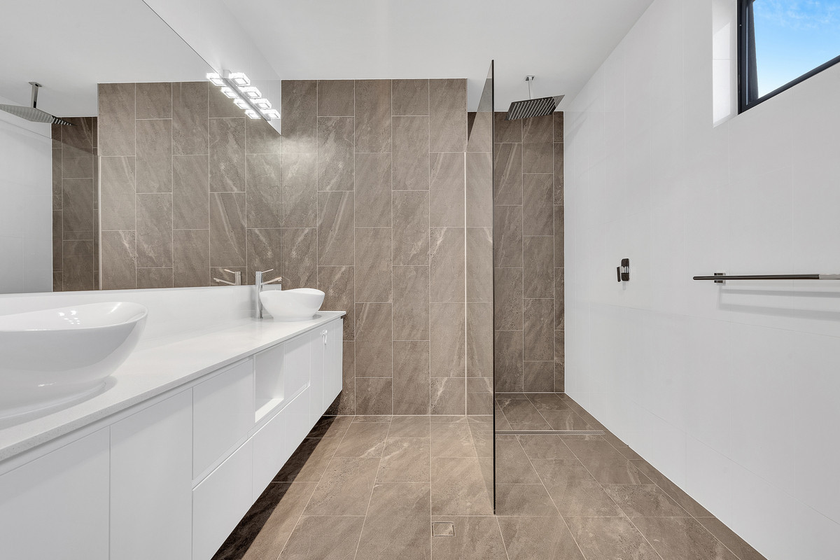 The home’s thoughtful layout includes four generously sized bedrooms with plush carpet underfoot, and built in robes offering comfort and style in equal measure. The main bedroom stands out as a luxurious retreat, complete with a walk-in robe and ensuite bathroom fitted with floor to ceiling tiles and and a double vanity.