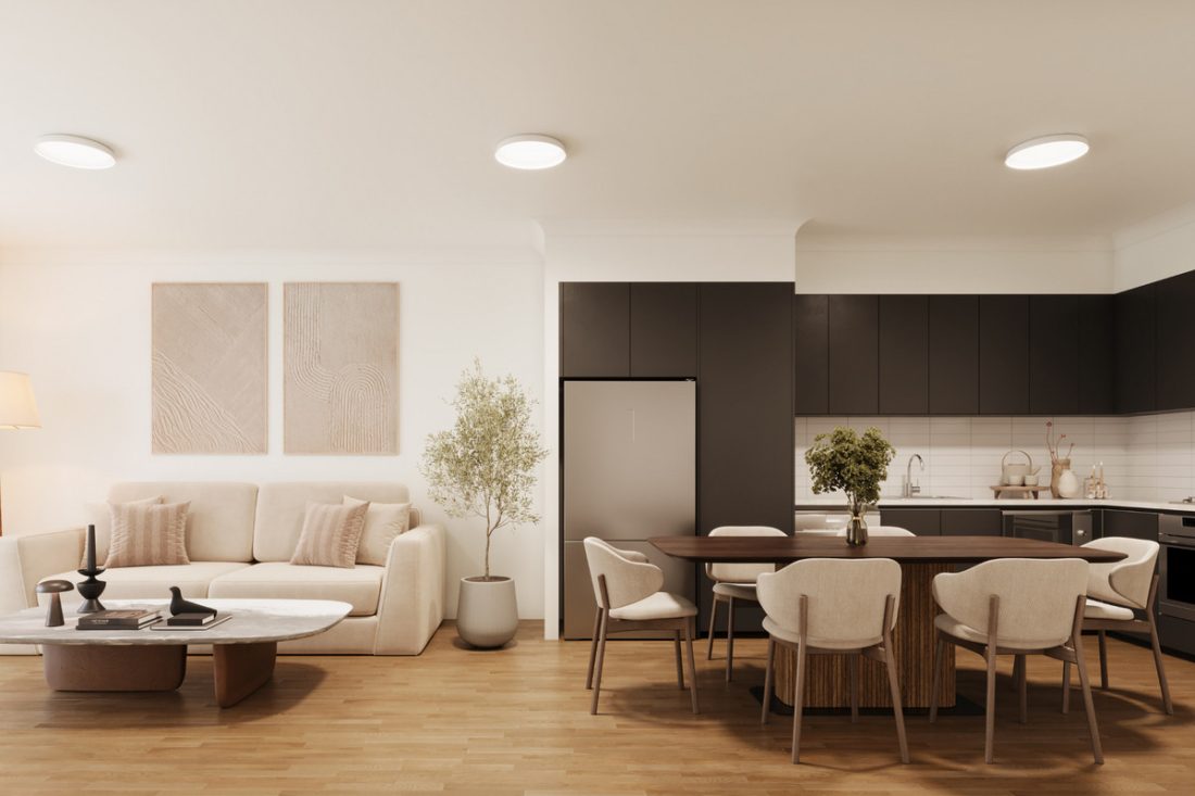 Inside, you’ll find two carefully curated colour schemes to suit your style. Opt for warm Natural Oak-look finish joinery or embrace the moody elegance of a Notaio Walnut-look paired with matte black accents. Whichever you choose, each home is finished in timeless neutral tones, ready for you to add your personal touch.